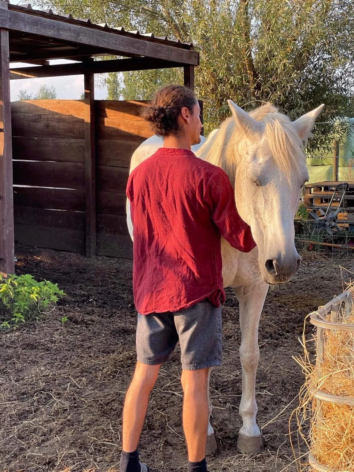 With my therapy horse, I invite you to make a connection with him and you get to pet him, lead him, feed him, cuddle him. These simple, yet effective exercises help you create agency, initiative and movement, helping you evacuate built-up stress, learned helplessness and regain a concept of gentle control.